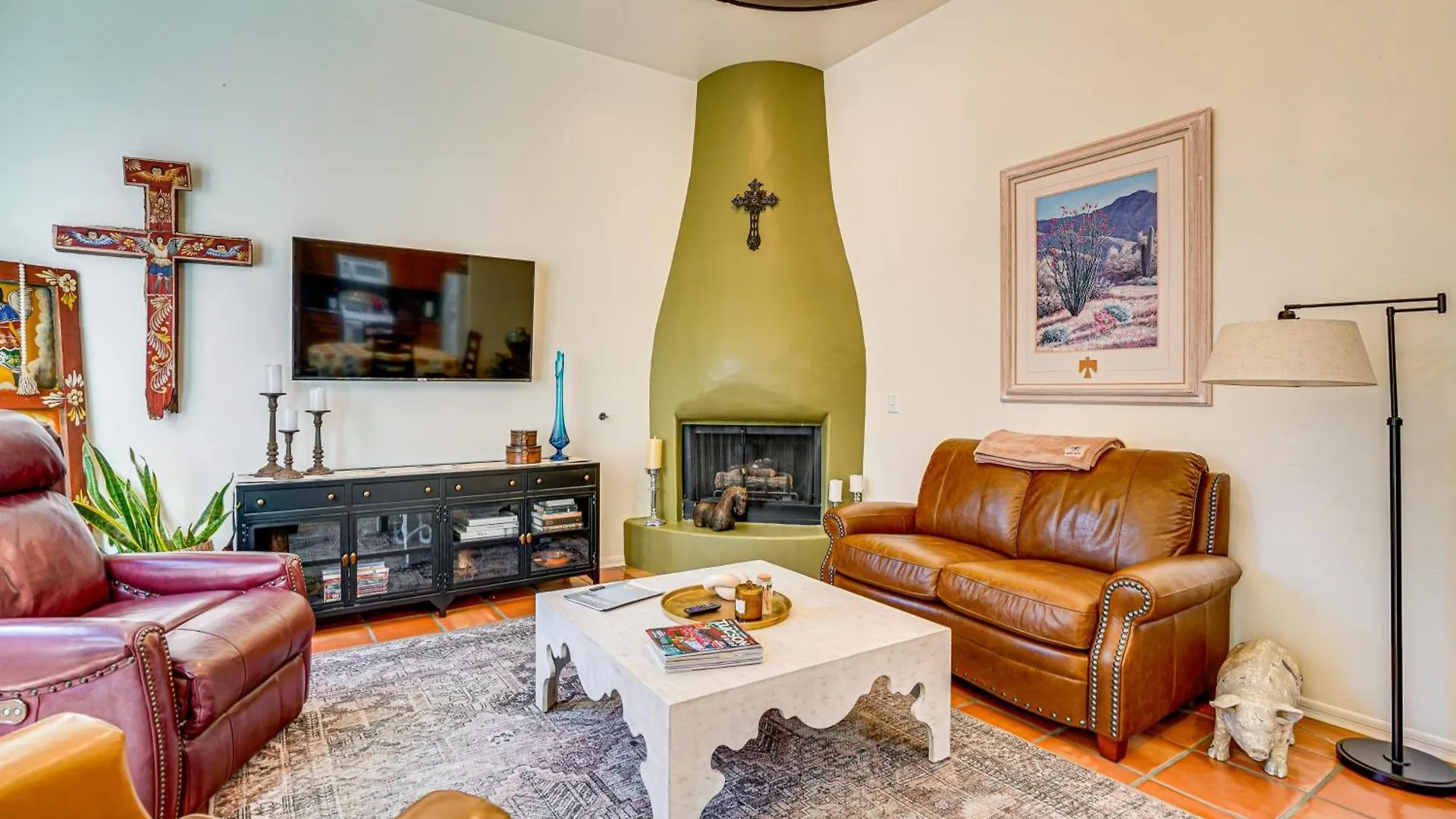 During the stay at the welcoming Sunny Adobe Retreat With Hot Tub And Mtn Views! Villa Tubac, guests can indulge in a Jacuzzi bath or visit Tubac Presidio State Historic Park, located a 19-minute walk away. Located just 0.9 miles from Tubac Art and Gifts, this 3-bedroom holiday home provides Wi-Fi and a car park.